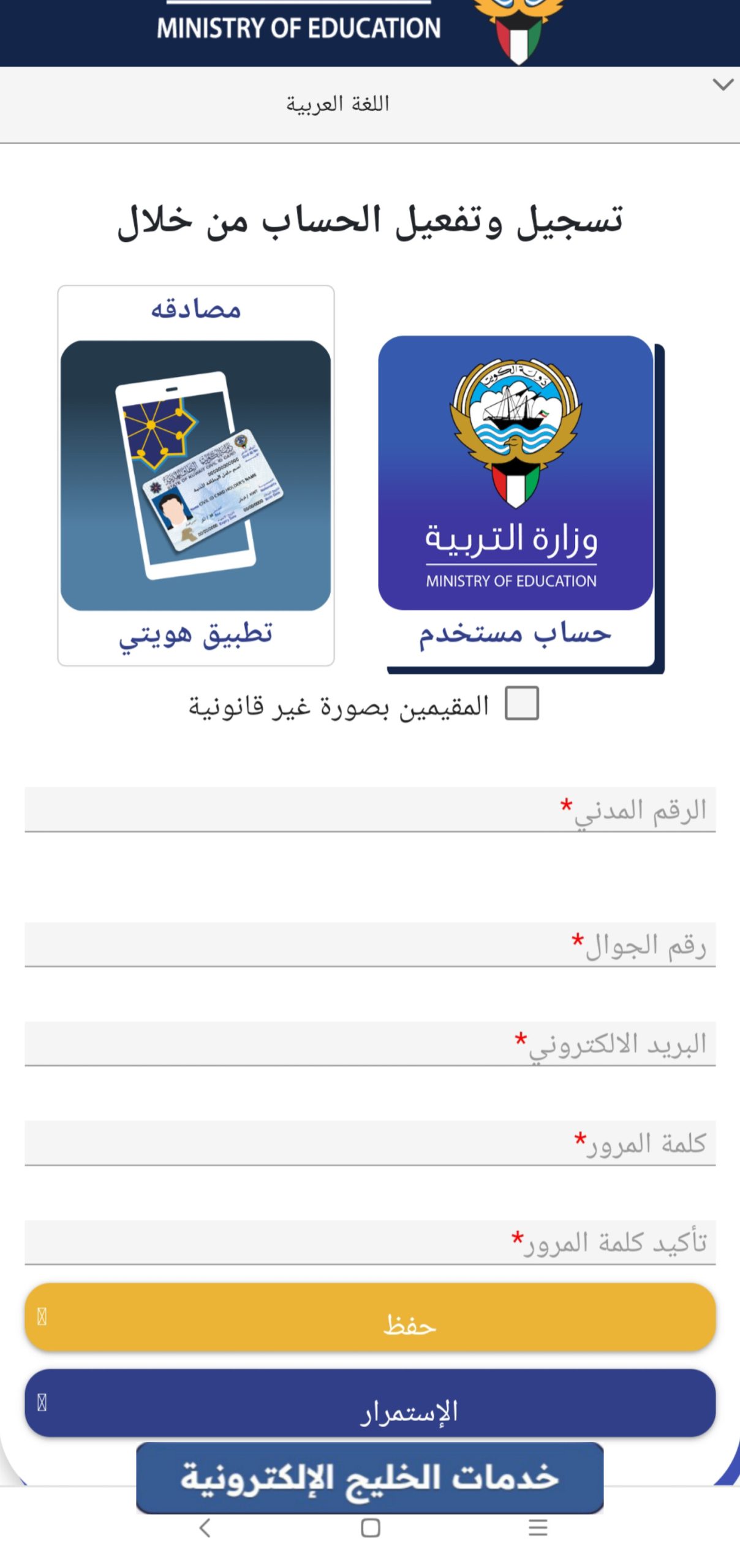 - الانتقال إلى خدمة التسجيل في بوابة الكويت التعليمية للمقيمين “من هنا“.