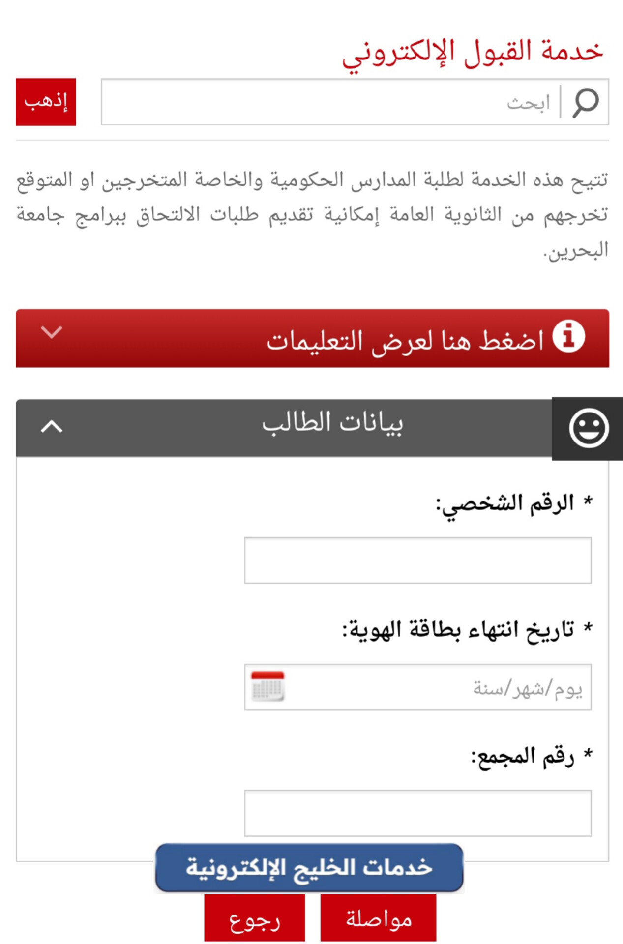 - الذهاب إلى خدمة التسجيل في جامعة البحرين “من هنا“.