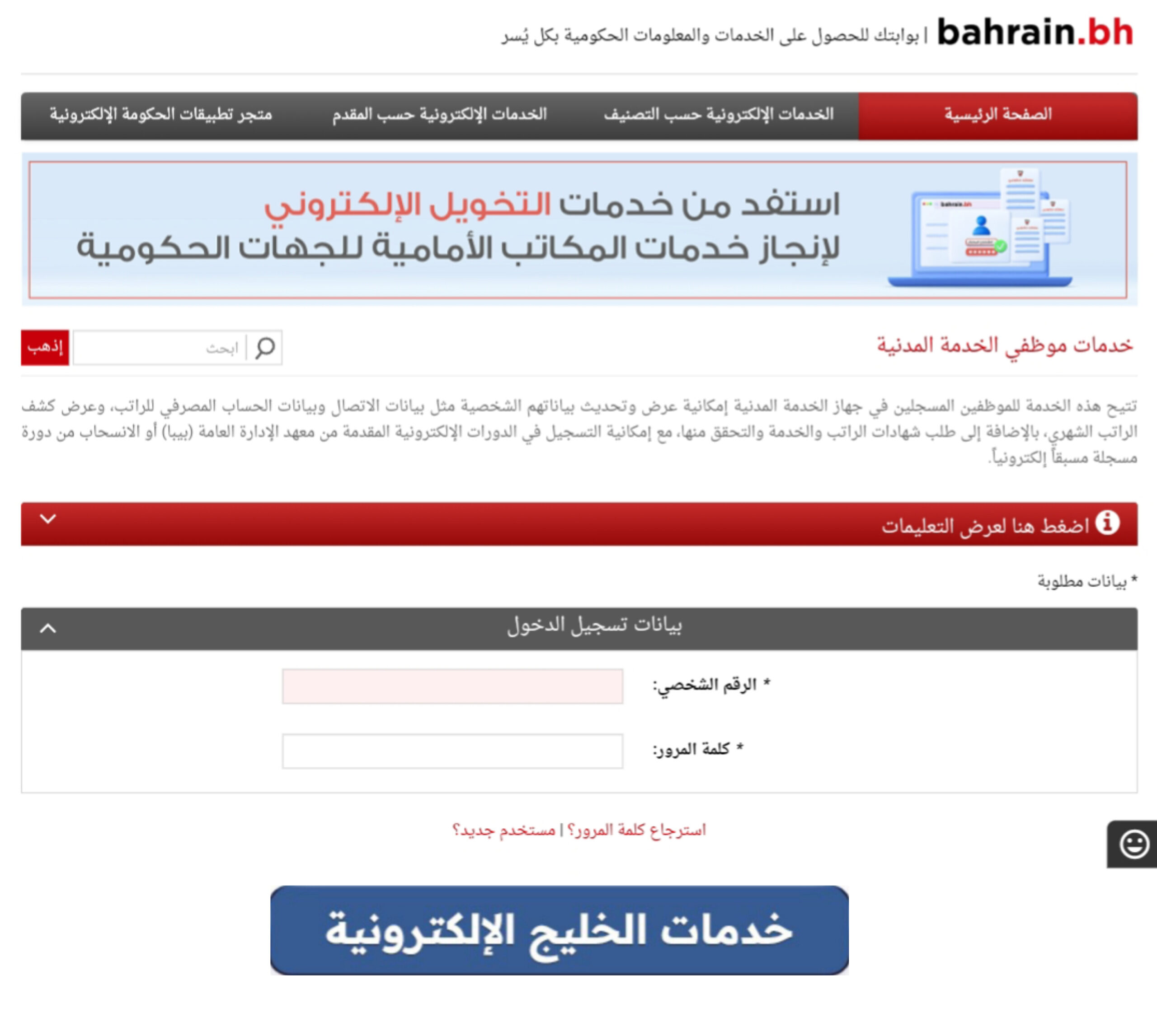 الاستعلام عن كشف الراتب الشهري جهاز الخدمة المدنية البحرين