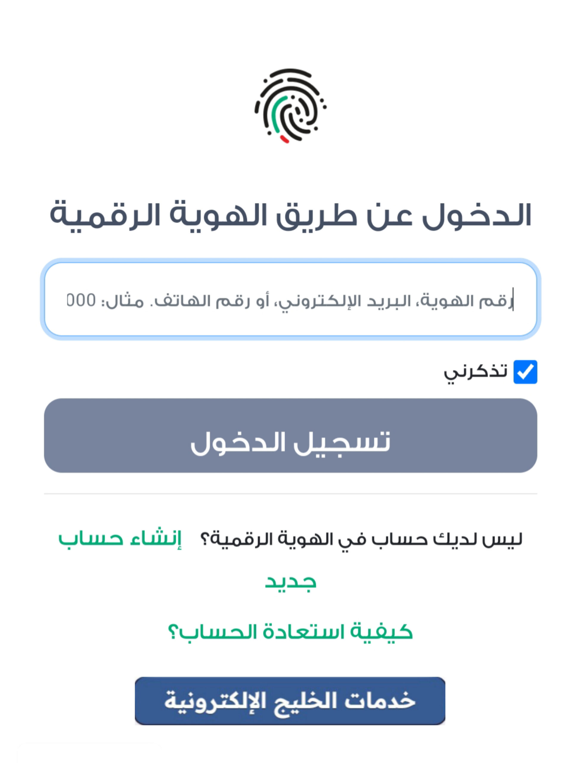 • كتابة رقم الهوية الإماراتية في الحقل المخصص.