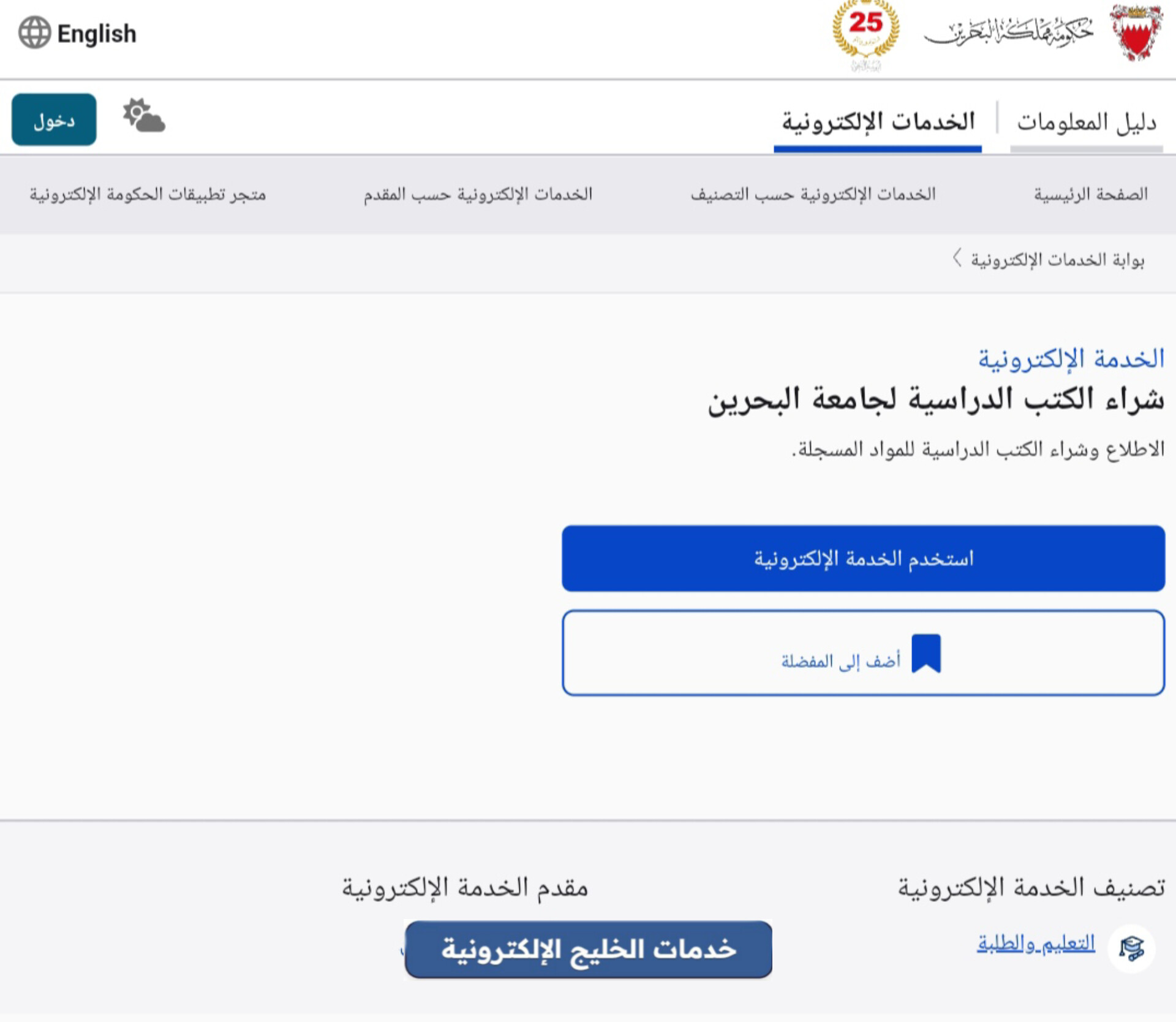 أتاحت هيئة المعلومات والحكومة الإلكترونية خدمة شراء الكتب إلكترونيا للطلاب في جامعة البحرين، وذلك عبر تسجيل الدخول إلى البوابة الحكومية واتباع تعليمات بسيطة، كما وفرت الهيئة عدة طرق لاستلام هذه الكتب في سبيل توفير وقت وجهد الطلاب.