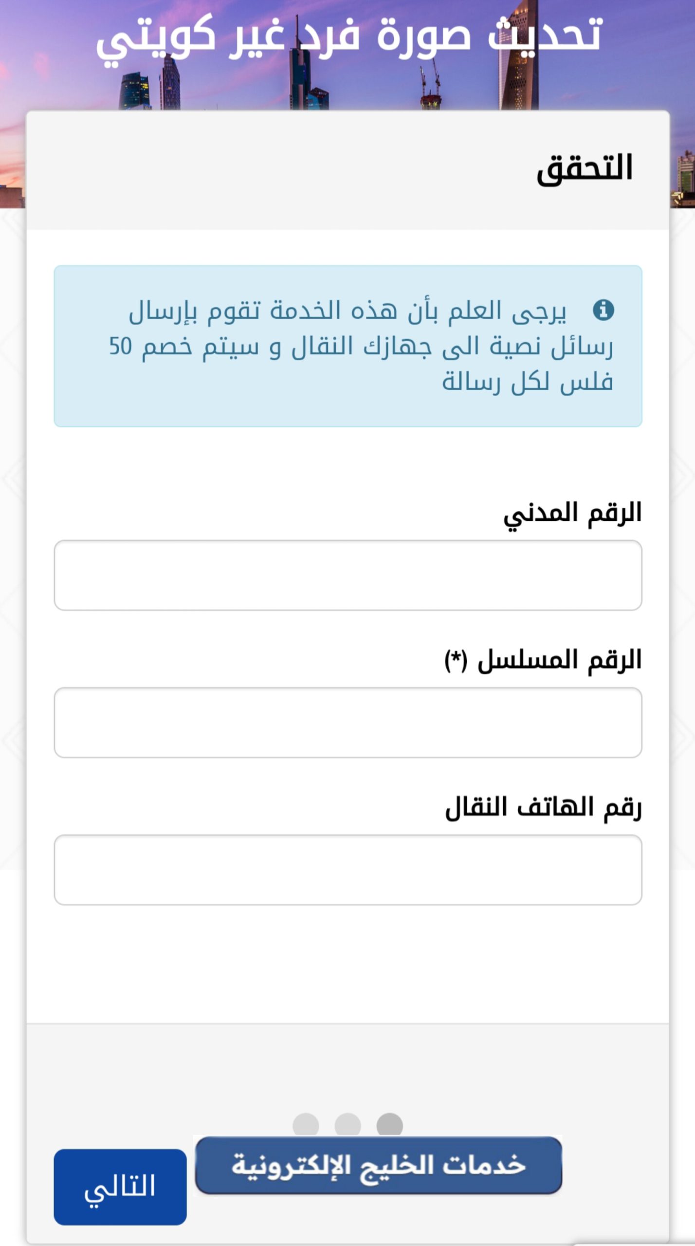 - إدخال الرقم المسلسل للبطاقة المدنية.